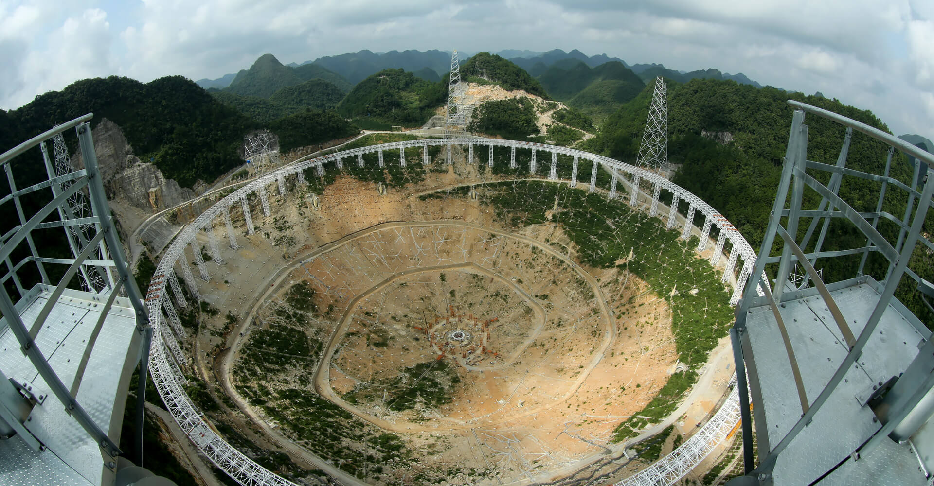 FAST反射面具有四大特點(diǎn)。一、尺度巨大,口徑500米、面積是美國(guó)望遠(yuǎn)鏡的2.5倍。二、主動(dòng)變位,反射面在工作時(shí),能實(shí)時(shí)調(diào)整形態(tài),在觀測(cè)方向形成300米口徑瞬時(shí)拋物面以匯聚電磁波,這完全不同于美國(guó)固定反射面望遠(yuǎn)鏡。三、超高精度,作為天文望遠(yuǎn)鏡,精度需達(dá)到毫米級(jí)。四、邊界復(fù)雜,工程位于地質(zhì)、地貌復(fù)雜的喀斯特洼地。
