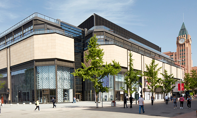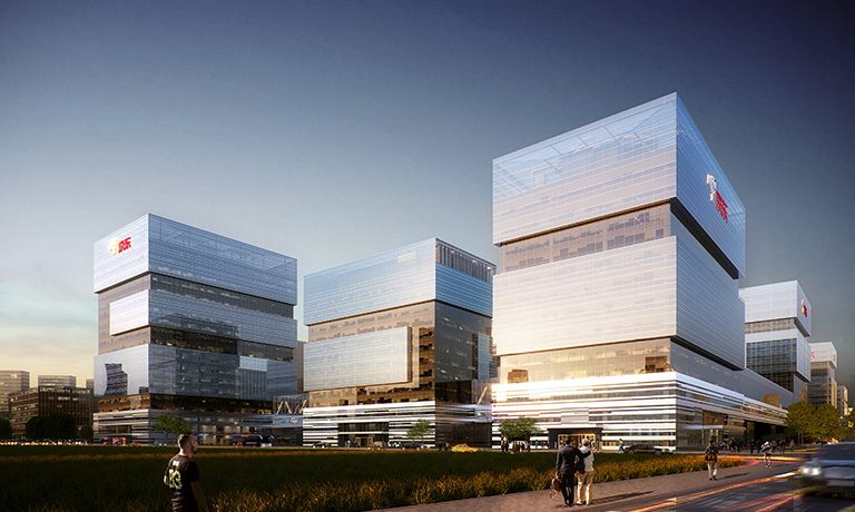 本項(xiàng)目位于一個規(guī)模超過10公頃的開放綠地之上,為了充分融入環(huán)境,并利用周邊的景觀文化資源,建筑通過柔和圓潤自由的空間形態(tài)實(shí)現(xiàn)與周邊道路和建筑的和諧對話。機(jī)動車由用地東側(cè)進(jìn)出,用地內(nèi)設(shè)車行環(huán)路。地下車庫設(shè)置1組雙行坡道出入口,位于用地北側(cè),其他地庫出口與奧體南區(qū)地下公共空間項(xiàng)目共用。建筑東北角為辦公主入口,北側(cè)、西南及南側(cè)為商業(yè)主入口。地下一層與奧南地下公共空間相連,有通道連接周邊各個地塊及地鐵站。
